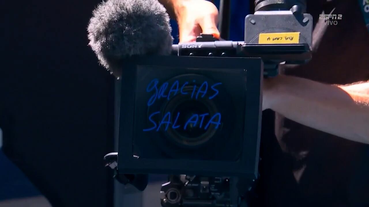 Después de vencer a Zhang por 6-3, 7-6 (0) y 6-3, Cerúndulo se acercó a la cámara principal y, con un mensaje escrito que decía “Gracias Salata”, rindió homenaje a la trayectoria de Guillermo Salatino, periodista referente del tenis en Argentina y Latinoamérica. El gesto, que destacó la reacción emotiva del público presente y del entorno del tenis internacional., quedó registrado por las cámaras y recorrió el mundo.