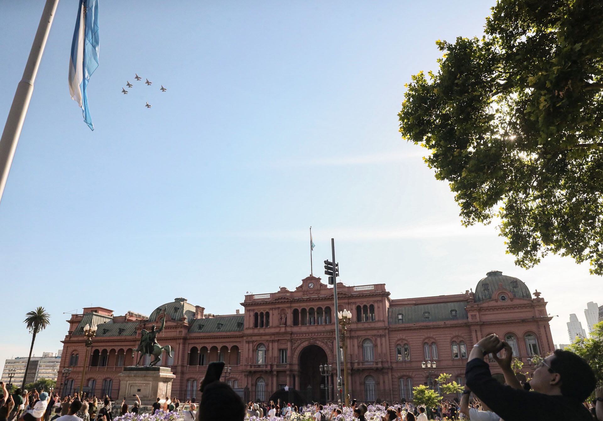 Cientos de personas se reunieron en la Casa Rosada, el Obelisco y la Plaza de Mayo, atraídas por un espectáculo atípico y, para algunos, histórico. Mientras unos salieron a buscarlos, la mayoría se topó con la sorpresa. Hubo aplausos, gritos y muchas banderas y remeras de Argentina. Celulares en alto y asombro por el estruendo.