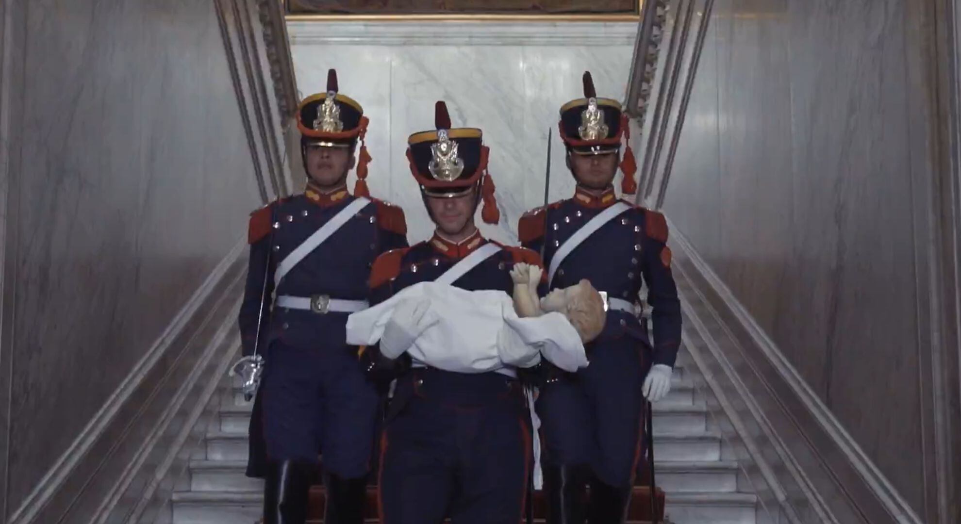 Por medio de la cuenta oficial en la red social X, el Gobierno nacional publicó una pieza audiovisual, con la intención de transmitir un mensaje de unión y esperanza. Con un guiño a la simbología religiosa, se observó como tres granaderos trasladaban al Niño Jesús por los pasillos y escaleras de la sede presidencial en Buenos Aires.